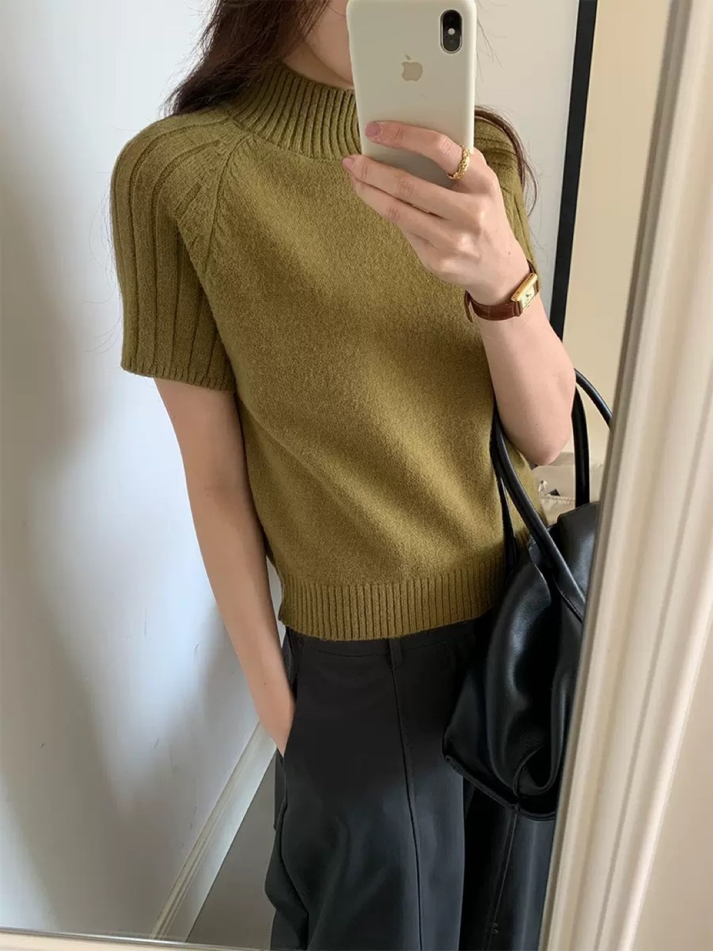 修身顯瘦半高領短袖針織衫
