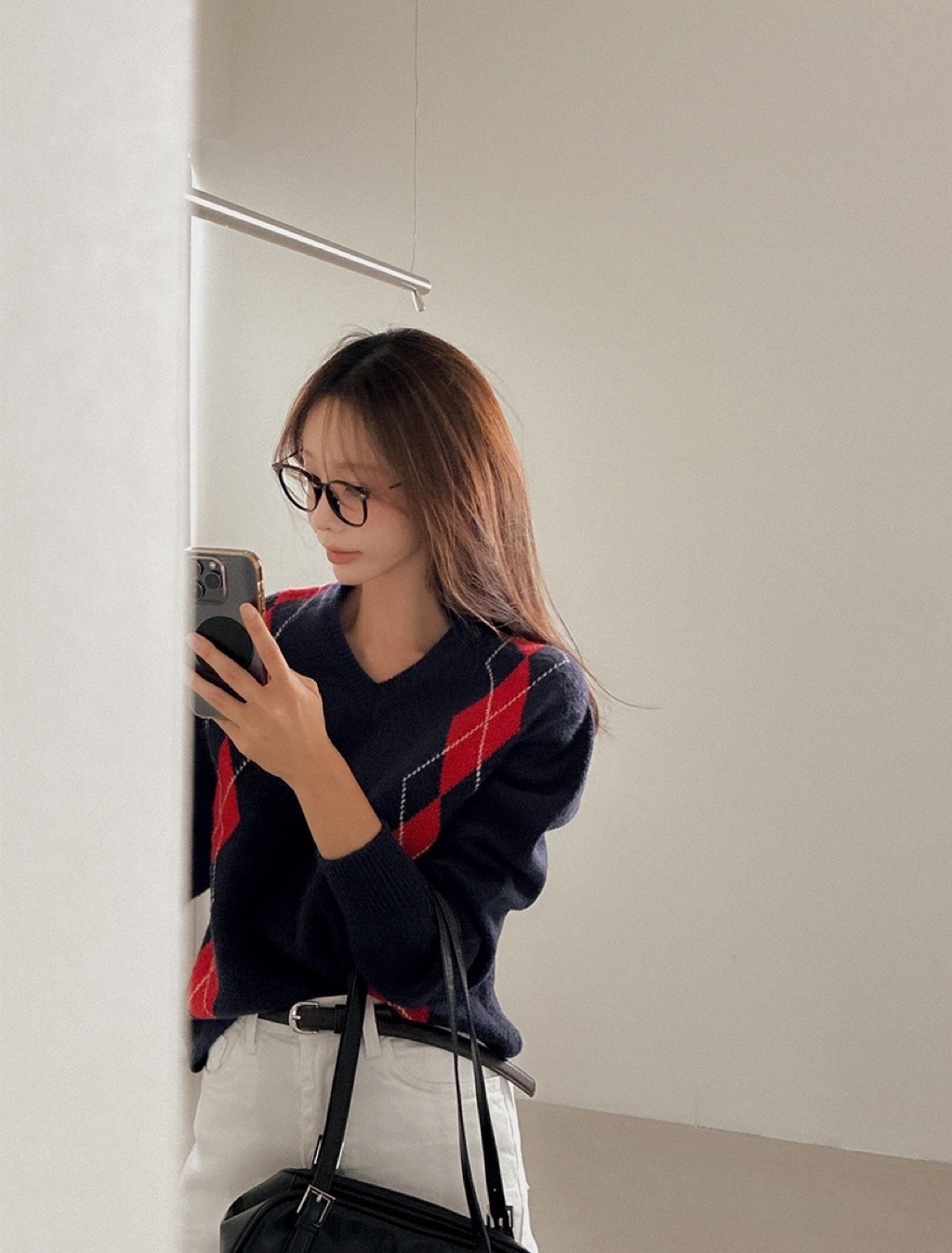Ci’s|正韓。知性菱格紋V領長袖上衣(u1-1127-( EV-0002 )
