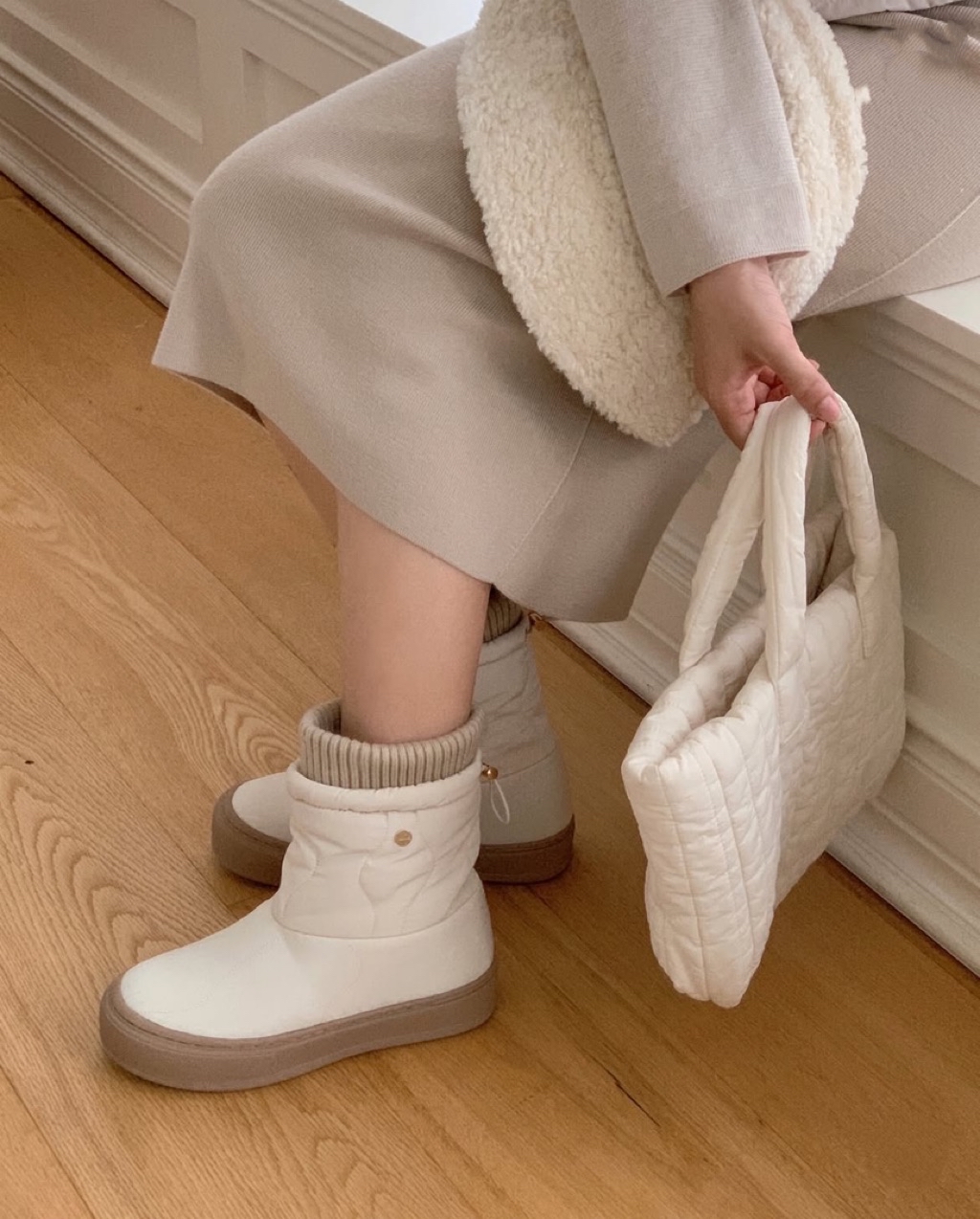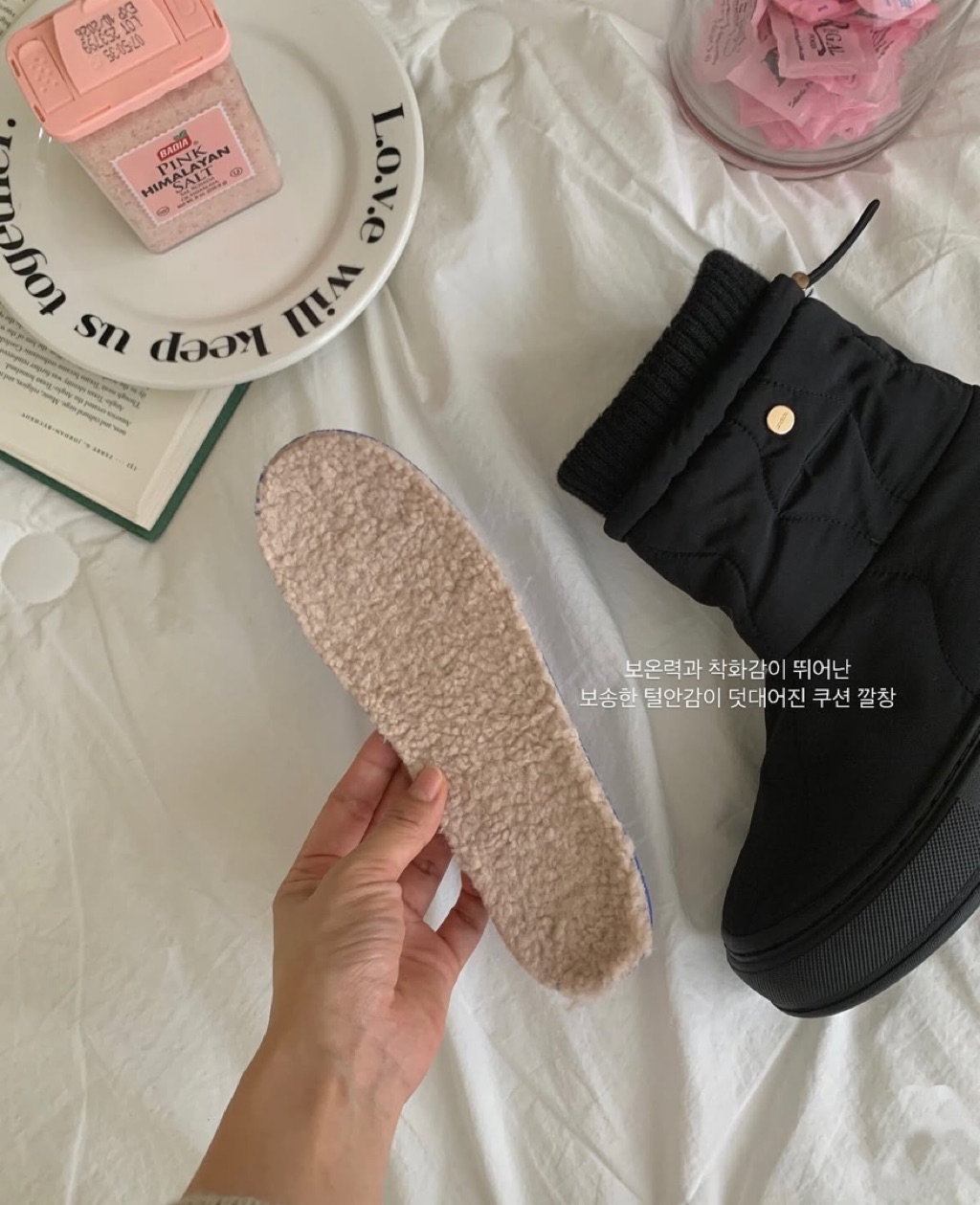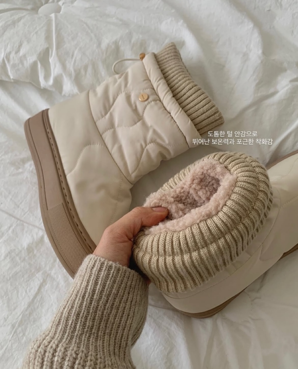 外層羽絨,中層針織,內裡跟底部都刷毛,鞋底基礎防滑