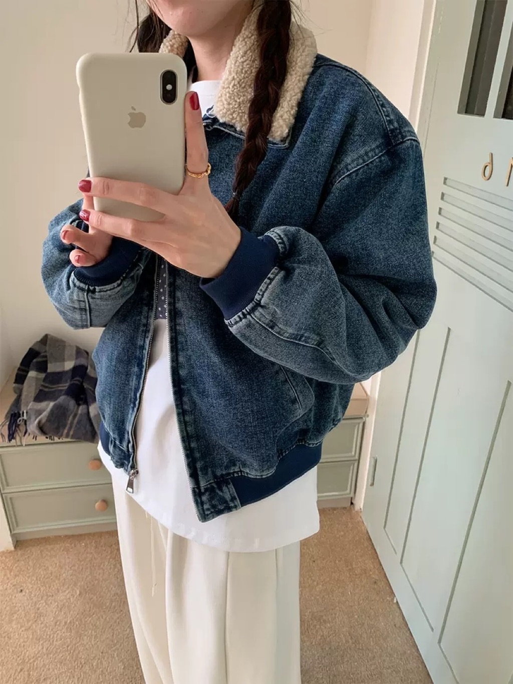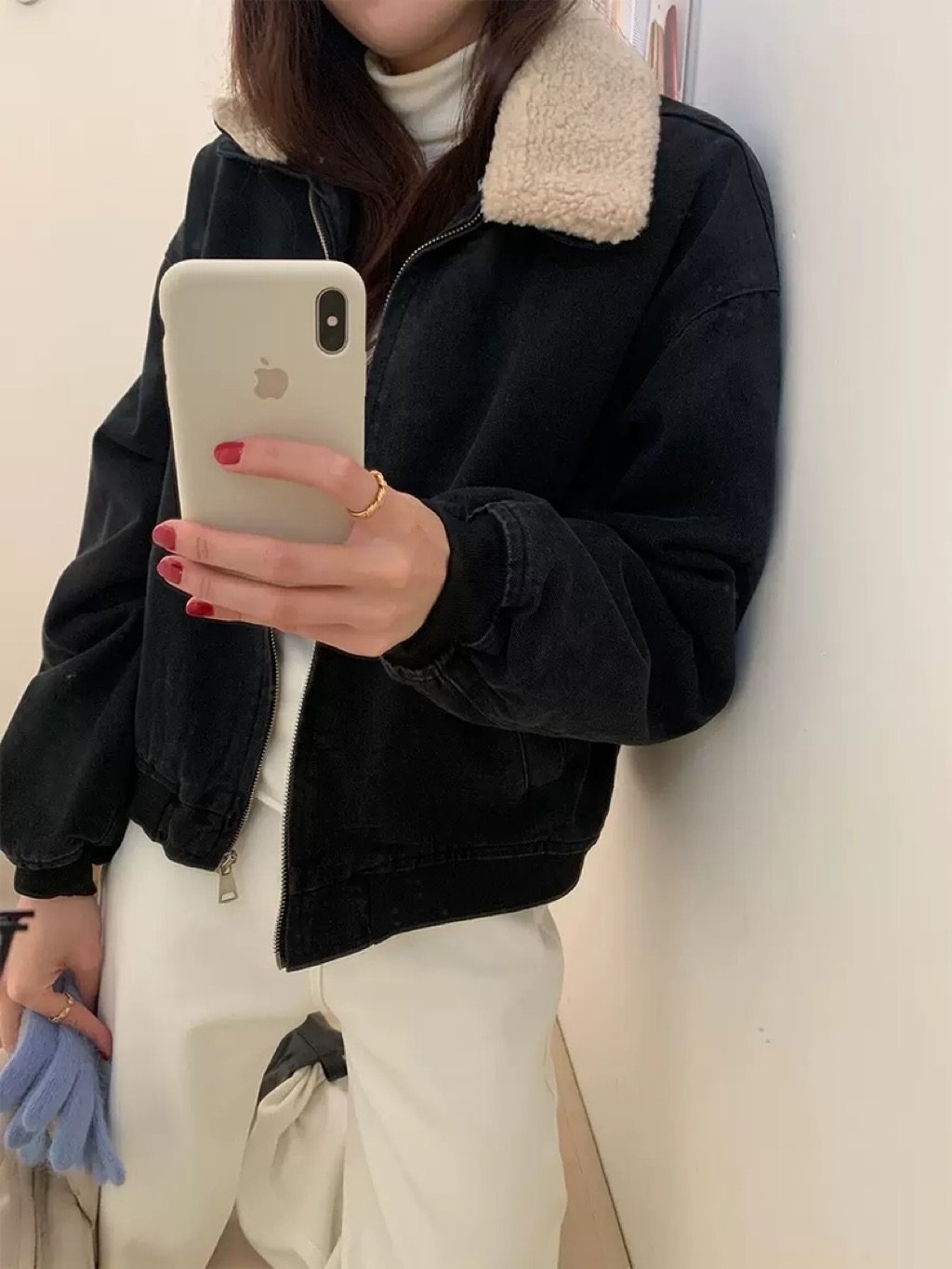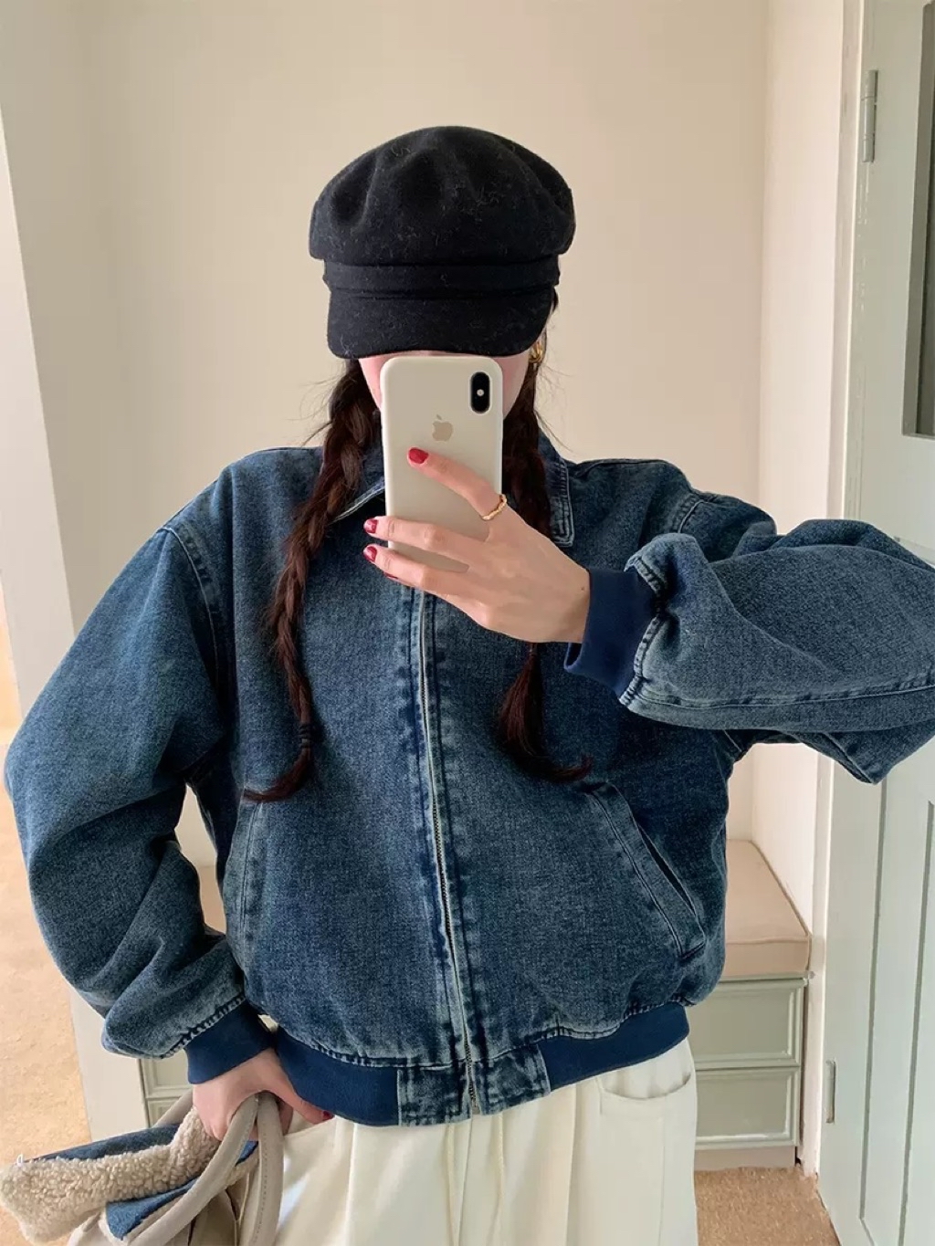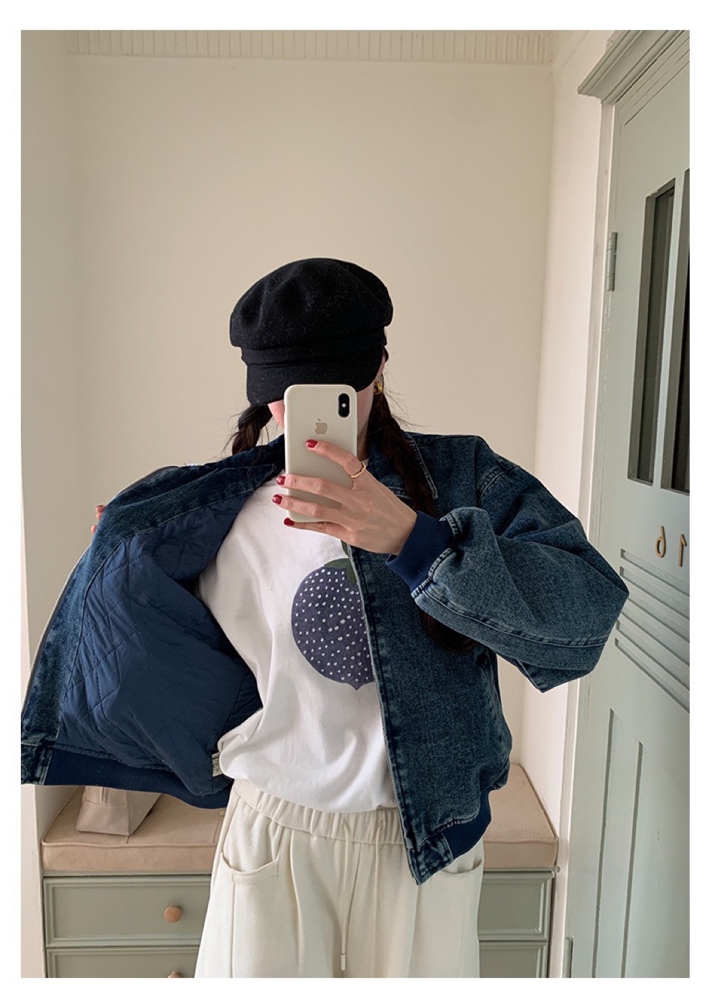 牛仔基底,內層夾棉填充結合絎縫,抗風保暖不臃腫