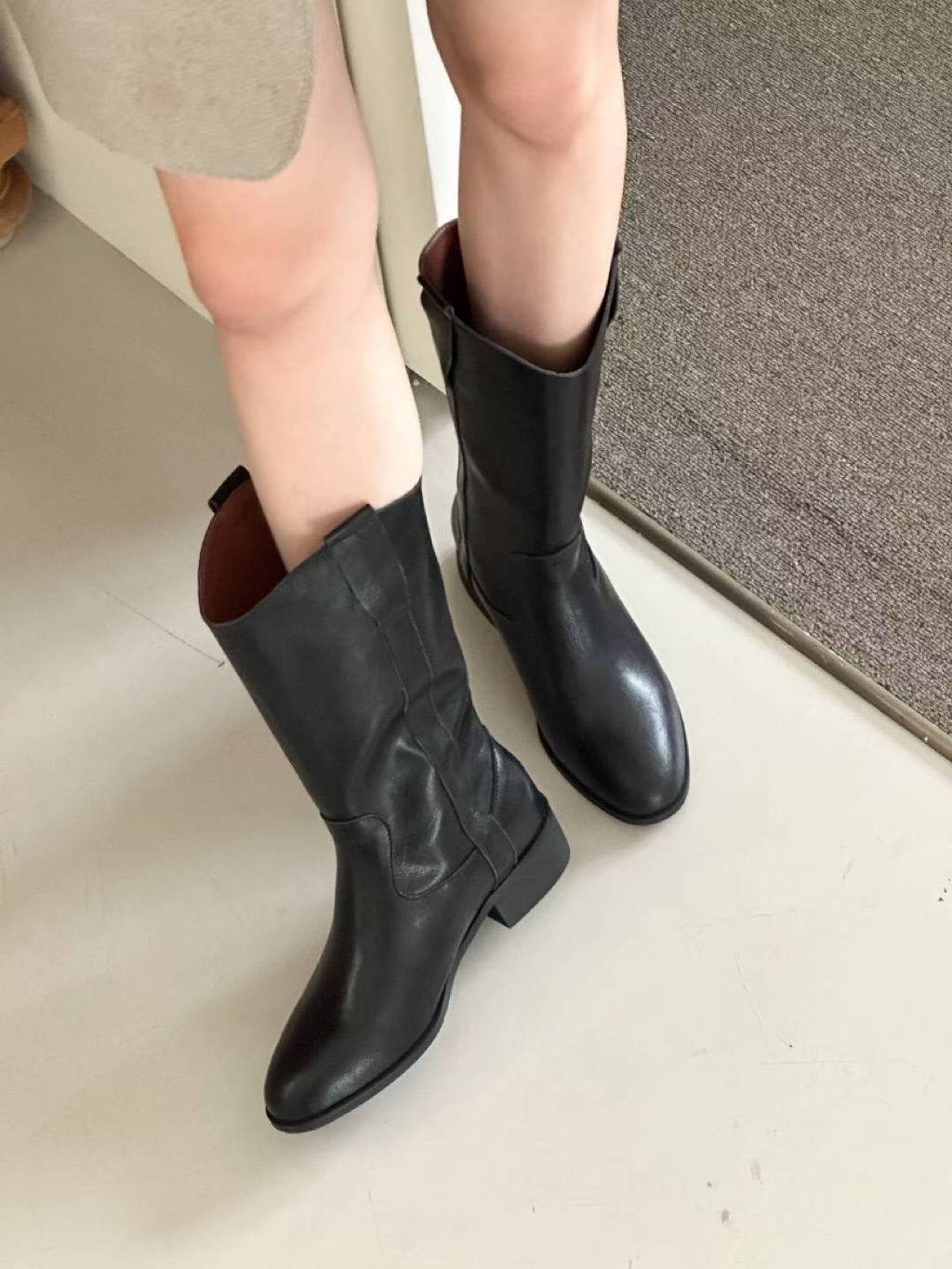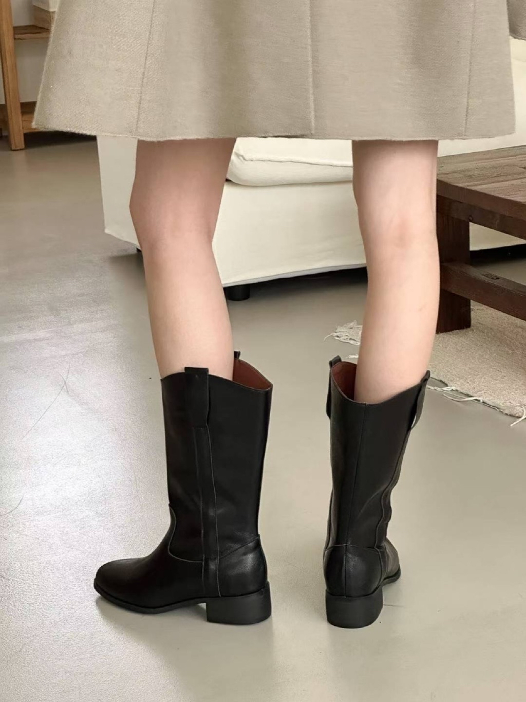 正韓。復古中筒短靴